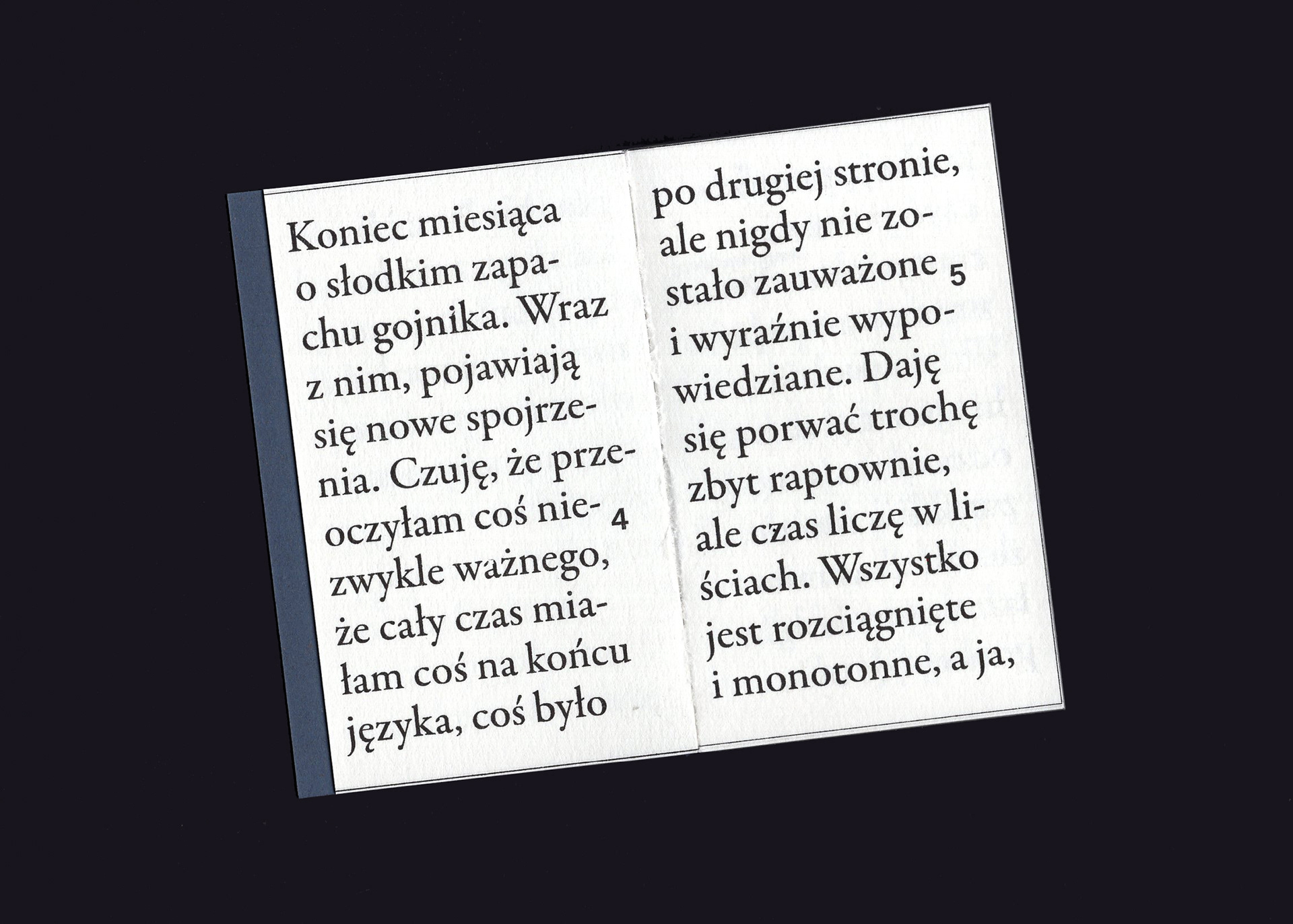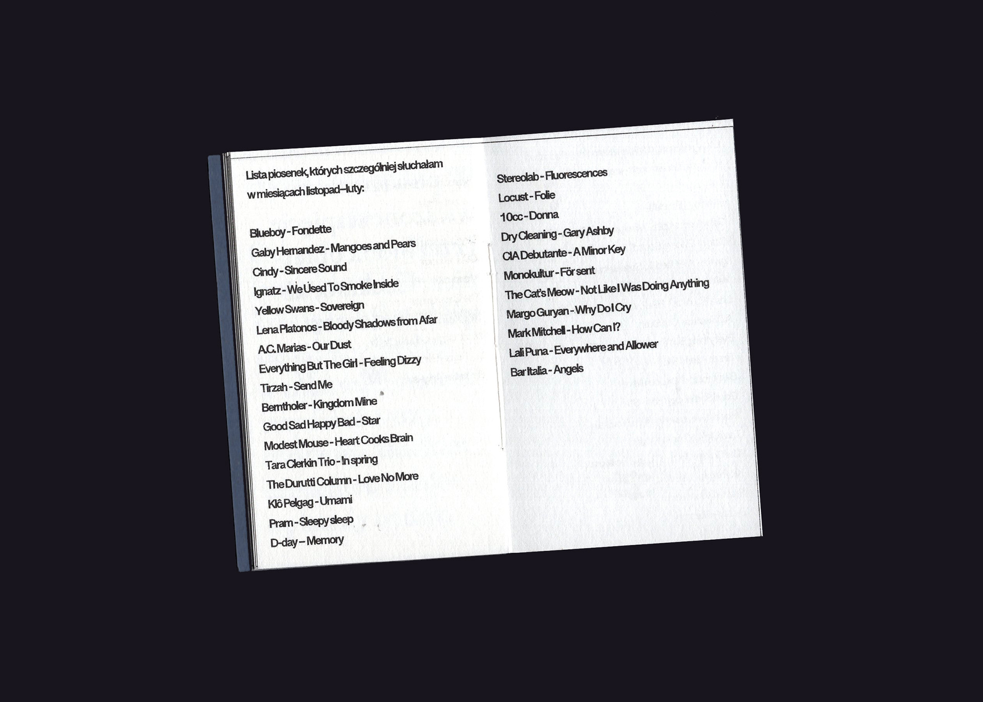 description: A publishing series that captures a record of thoughts — an attempt to preserve the melodies, objects, and emotions accompanying the past months. The pocket-sized edition evokes the form of a travel diary and the act of jotting down notes on a phone. The project includes an envelope with a print, a sketchbook, a text booklet, and photographic inserts. Each copy is folded and hand-sewn.